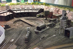 We do not follow, nor run a strict prototypic era or type of layout, though the emphasis is on the steam to diesel transition period in Canada. Currently our track plan includes a major yard, engine servicing facility with round house and turn table, 2 major towns, a harbour switching area, a mountainous region, and more.